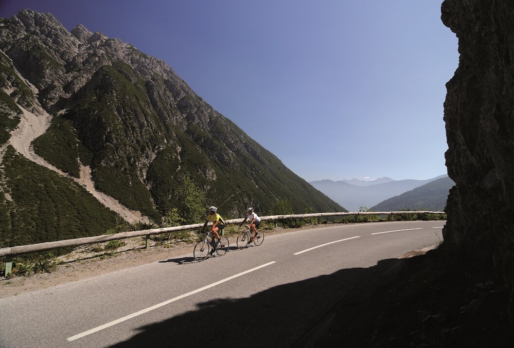 Start bei der Tourismusinformation in Tannheim in Richtung Osten, vorbei an Nesselwängle über den Gaichtpass nach Weißenbach. Beim Kreisverkehr rechts abbiegen ins Lechtal bis nach Warth. Links hinüber nach Lech, in den berühmten Wintersportort. Nun den Anstieg hoch nach Zürs und weiter zum Flexenpass, 1.773 m. Bei der Abfahrt zur Alpe Rauz am Flexenpaß: Vorsicht dunkle Galerien. Nun die letzten 3 km des Arlbergpasses hinauf nach St. Christoph zur Arlbergpasshöhe in 1.793 m. Es folgt nun eine Abfahrt nach St. Anton und weiter das Stanzer Tal hinaus nach Landeck. In Landeck der Beschilderung "Imst - Schönwies" folgen und über Zams parallel zur Autobahn bis nach Imst. In Imst der Beschilderung "Hahntennjoch" folgen. Auf 16 Kilometer gibt es 1.200 Höhenmeter zu bewältigen, mit einer Steigung von 12 – 17%, bis zur Passhöhe. Es folgt eine tolle Abfahrt bis nach Elmen, das Lechtal hinab bis Weißenbach. Beim Kreisverkehr rechts abbiegen ins Tannheimer Tal und zurück zum Ausgangspunkt.Sicherheitshinweise: