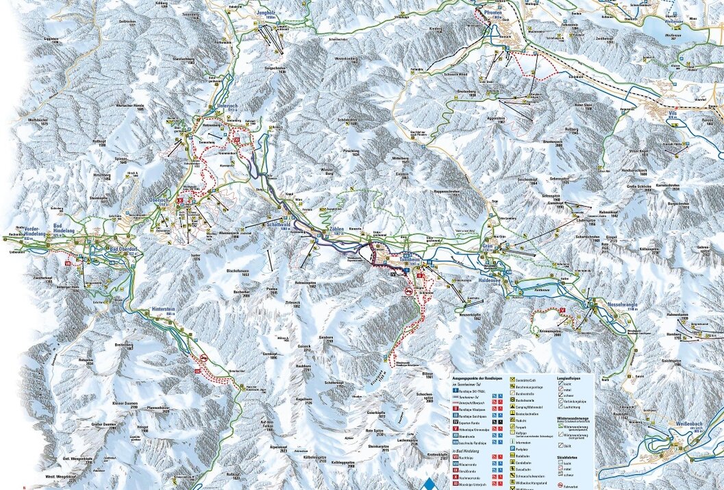 El mapa de pistas del valle de Tannheimer facilita la planificación de las rutas, muestra las distancias y ayuda a estimar el tiempo de recorrido.