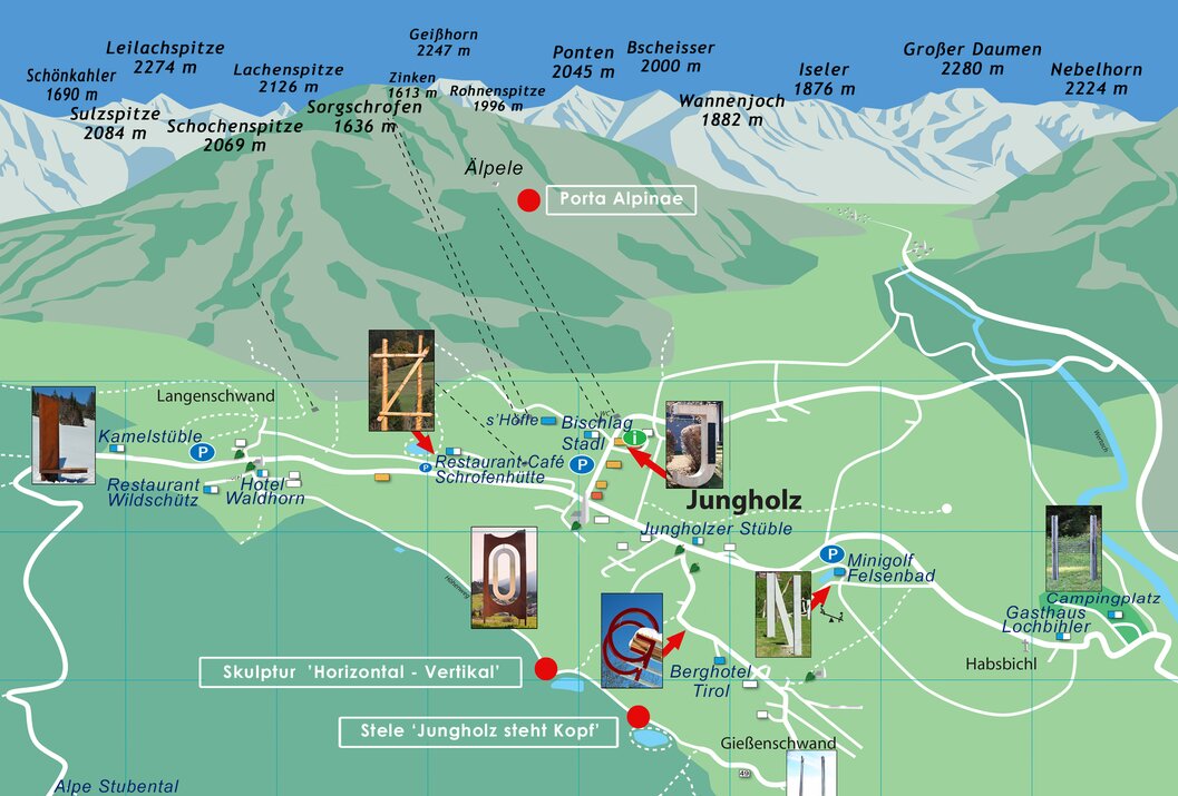 Lassen Sie sich von der unterschiedlichen Gestaltung der einzelnen Buchstaben des Ortsnamens Jungholz durch verschiedene Künstler aus dem Umkreis überraschen. Gleichzeitig wandern sie durch die erfrischende Natur des Ortes. Der Buchstabenweg in Jungholz startet beim Liftparkplatz in Jungholz. An verschiedenen Punkten im Ort sind die Buchstaben des Ortsnamens aufgestellt. Alle Punkte können über einen Rundweg somit erreicht werden. Die von uns ausgewählten Barrierefreien Wege und Ausflugsziele laden auch Familien und Menschen mit Mobilitätshilfen zum Entdecken ein: Sie sind überwiegend asphaltiert oder gut geschottert und meist problemlos mit Kinderwagen oder Rollstuhl zu befahren – bei einzelnen Passagen kann eine helfende Hand jedoch von Vorteil sein.