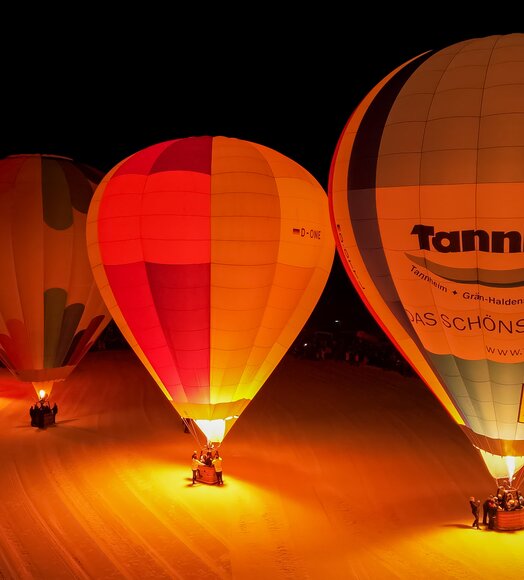 Wenn die Heißluftballons bei Dunkelheit erleuchtet werden, entsteht ein faszinierendes Lichterspiel – ein Highlight für Winterabende.