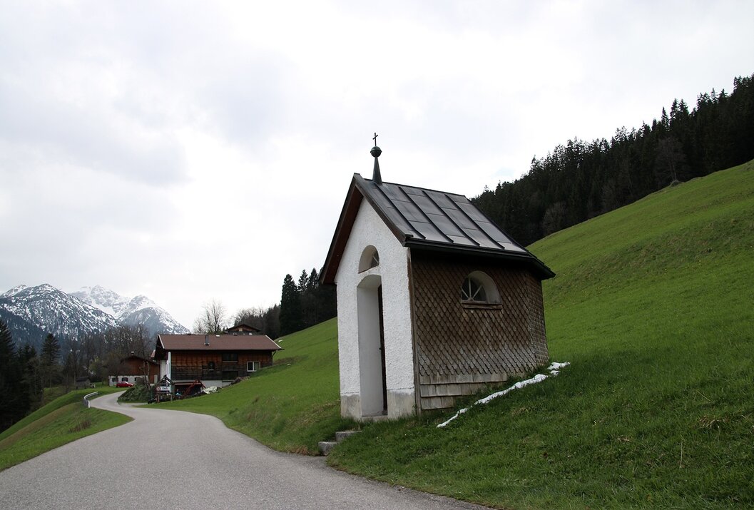 Wegbeschreibung:Richtung Osten führt die Strecke parallel zur Bundesstraße, rechts haltend bis in den Ortsteil Rauth. Von dort zur Stegmühle, die Bundesstraße überqueren und weiter in den Ortsteil Gaicht. Danach Richtung Norden, vorbei an der Unterführung nach Nesselwängle. Nach einem weiteren leichten Anstieg nördlich an Nesselwängle vorbei und bei der Weggabelung Sulzbach Richtung Süden zurück zum Ausgangspunkt.
