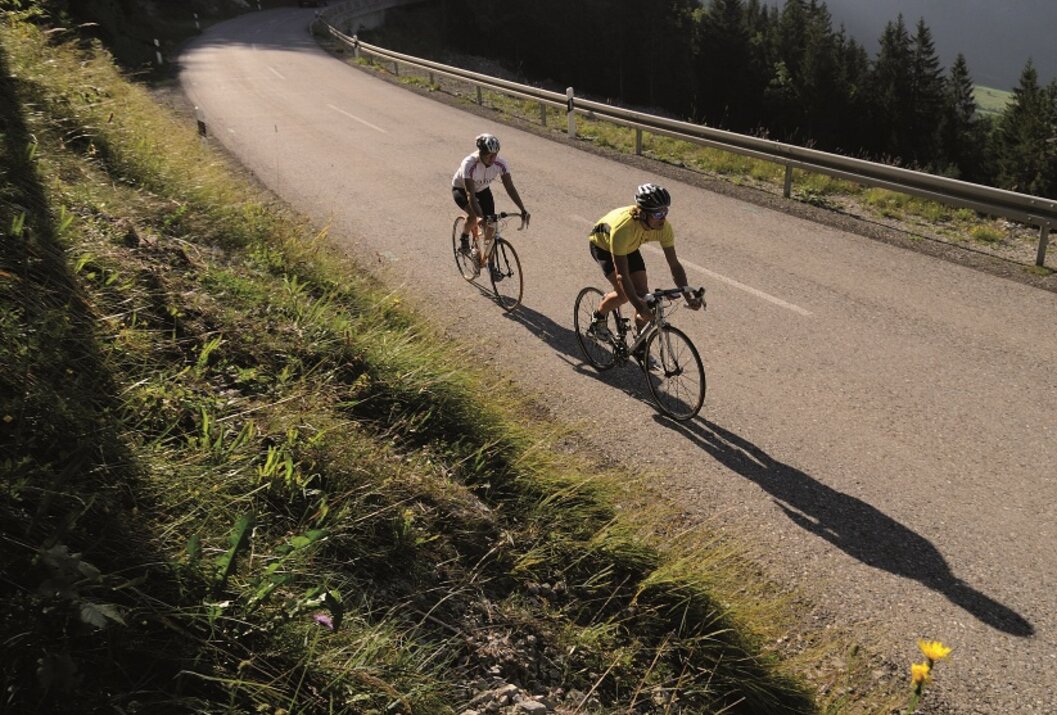Start bei der Tourismusinformation in Tannheim in Richtung Osten, vorbei an Nesselwängle über den Gaichtpass nach Weißenbach. Beim Kreisverkehr rechts abbiegen ins Lechtal, vorbei an Forchach, Stanzach bis nach Elmen. Der Beschilderung "Hahntennjoch" über einen Anstieg von 13% nach Bschlabs folgen. Stetig aufwärts im Schnitt von 12% die Serpentinen hinauf nach Pfafflar. Weiter zur Passhöhe in 1.903 Meter. Als Lohn für die Überwindung von knapp 1.000 Höhenmeter folgt eine 16 km lange Abfahrt nach Imst hinunter. In Imst links halten Richtung Fernpaß, über die Ortschaften Tarrenz und Nassereith. Nach der Anstrengung über das Hahntennjoch ist der Fernpaß eine Spazierfahrt, nur der starke Verkehr macht einem zu schaffen. Nach dem Fernpaß rechts abbiegen und den Lermooser Tunnel über Biberwier und Lermoos umfahren, auf die B 179 wieder auffahren bis Reutte. In Reutte der Beschilderung "Krankenhaus", über Ehenbichl, Rieden nach Weißenbach folgen. Beim Kreisverkehr rechst abbiegen ins Tannheimer Tal und zurück zum Ausgangspunkt.Tipp des Autors: