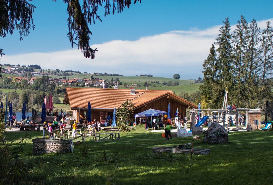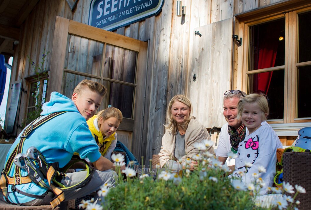 Am Seehaus pausieren, die Kinder in den Kletterwald schicken!Sicherheitshinweise: