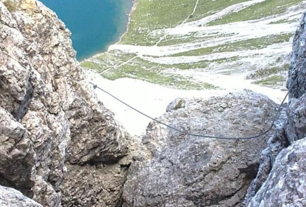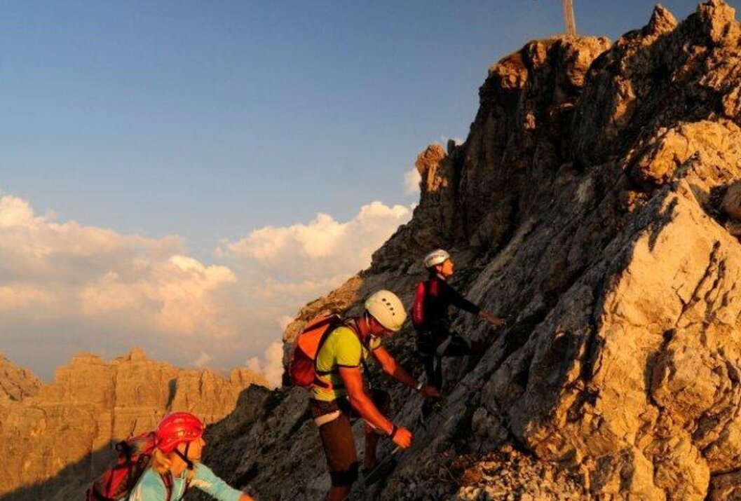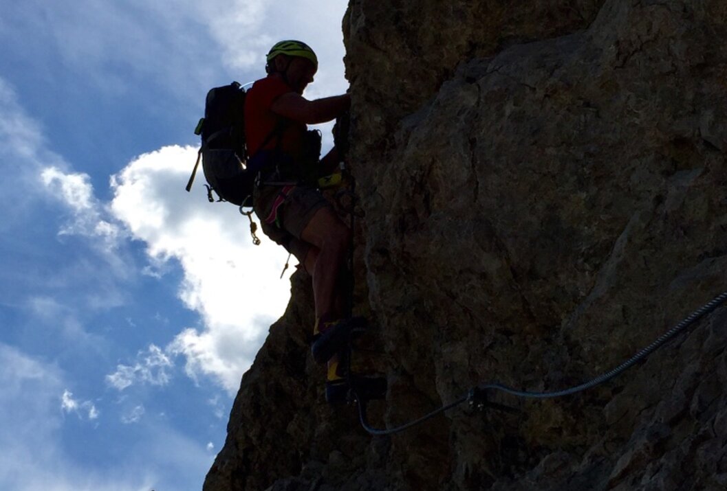 Vollständige Klettersteig-Ausrüstung (Klettersteigset, Gurt und Helm) auch für Geübte unbedingt empfohlen!
