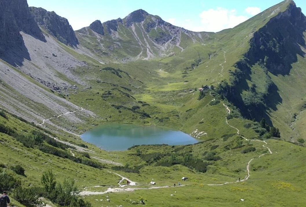 Ausgangspunkt ist der Vilsalpsee oder die Talstation Neunerköpfle in Tannheim. Von dort über die Landsberger Hütte (1.805 m) in ca. 2,5–3 Stunden Aufstieg zum Einstieg beim Lachesee. Der Weg ist markiert und führt über schöne Almlandschaften ins hochalpine Gelände.