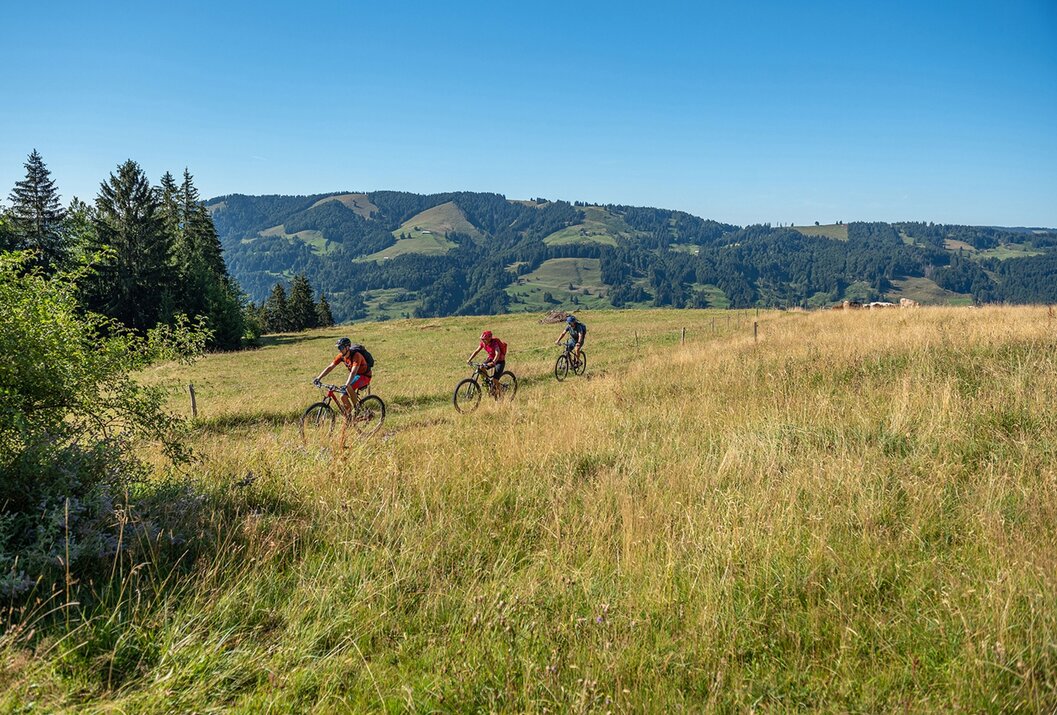 Die Tour Wildes Allgäu führt auf abwechslungsreichem Untergrund zunächst zum Hochgrat und von dort durch das wildromantische Ehrenschwanger Tal. Der Rückweg verläuft hoch über dem Konstanzer Tal und endet mit der Umrundung des Hündle. Landschaftlich besticht die Runde mit herrlichen Ausblicken auf die Gipfel der imposanten Nagelfluhkette sowie zum Alpsee und weit übers Konstanzer Tal. Es geht am rauschenden Gebirgswasser der Weißach entlang und an zahlreichen Alpen vorbei, von denen einige die Möglichkeit für einen Einkehrstopp bieten.Sicherheitshinweise: