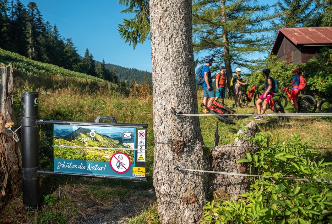 - Nimm Rücksicht auf Natur und Wild, verlasse die gekennzeichnete Route nicht, verzichte auf das Fahren abseits der geöffneten Wege und beende deine Biketour vor der Dämmerung. Hinterlasse keine Abfälle!