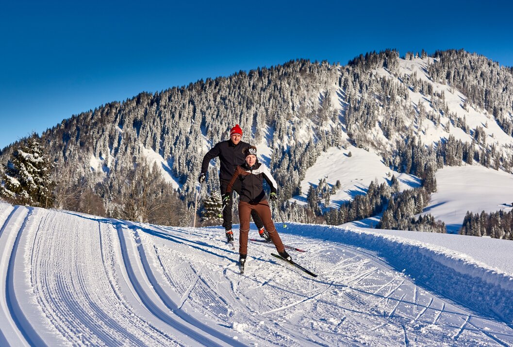Auf der wunderbar präparierten Loipe durchs Tannheimer Tal cruisen. Auf der Strecke finden Sie einige Möglichkeiten zum Einkehren und verweilen.