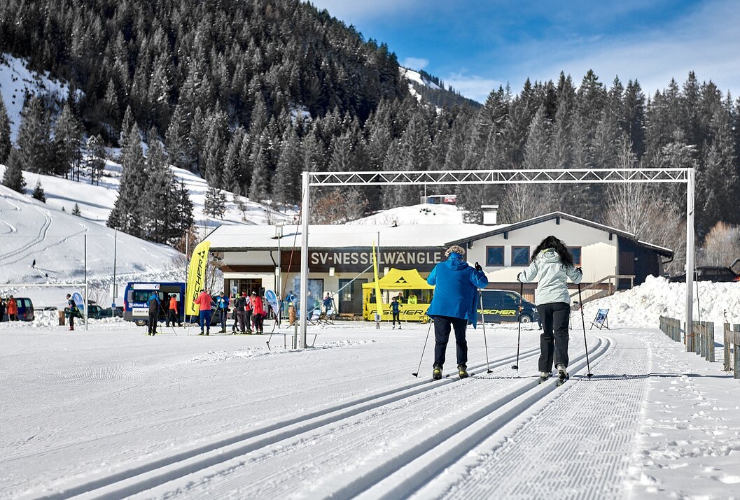Die Rundloipe in den Nesselwängler Feldern ist aufgrund der Höhenlage die schneesicherste Loipe im Tal. Hier ist das Langlaufen meist bis ins Frühjahr möglich.Die Loipe ist auch für den Nachtlanglauf beleuchtet.