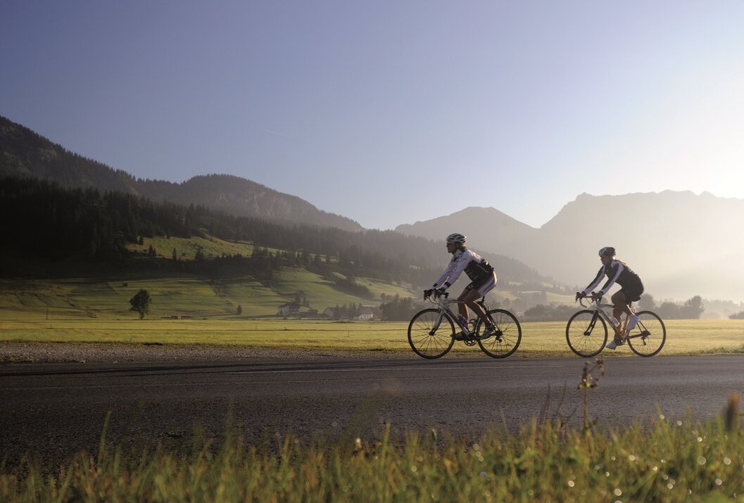 Unter Radsportlern ist das Tannheimer Tal schon länger bekannt, denn 2001 zog der Tross der Österreich Radrundfahrt durchs Tal. 2005 kamen die Radprofis der Bayernrundfahrt bei der Auftaktetappe auf Tiroler Boden und wurden mit der Bergwertung Tannheimer Tal und der Bergwertung Jungholz belohnt. Und sogar Profis fielen die landschaftlichen Reize des "wohl schönsten Hochtal Europas" auf. Sattgrüne Wiesen, der Haldensee und eine schöne Bergkulisse begleiteten die Radprofis auf ihren Wettkampfkilometern. Und somit hat sich das Tannheimer Tal auch als ideale Region für gezieltes Training oder ausgedehnte Touren angepriesen. "Das Tannheimer Tal ist ein idealer Startpunkt für lange Rennradtouren in die umliegenden Regionen wie zum Beispiel an den Bodensee oder an den Arlberg", so Michael Keller, Geschäftsführer des Tourismusverbandes Tannheimer Tal und ehemaliger Mountainbike- Bundestrainer Österreichs. Radsportler finden im Tannheimer Tal neben dem idealen Ausgangspunkt auch eine breite Palette von Unterkünften. Vom 5 Sterne Haus bis zum Privatzimmer können Sie Ihe Unterkunft wählen. Nach einer schönen Ausfahrt die Seele baumeln lassen und neue Kräfte tanken. - Das Tannheimer Tal