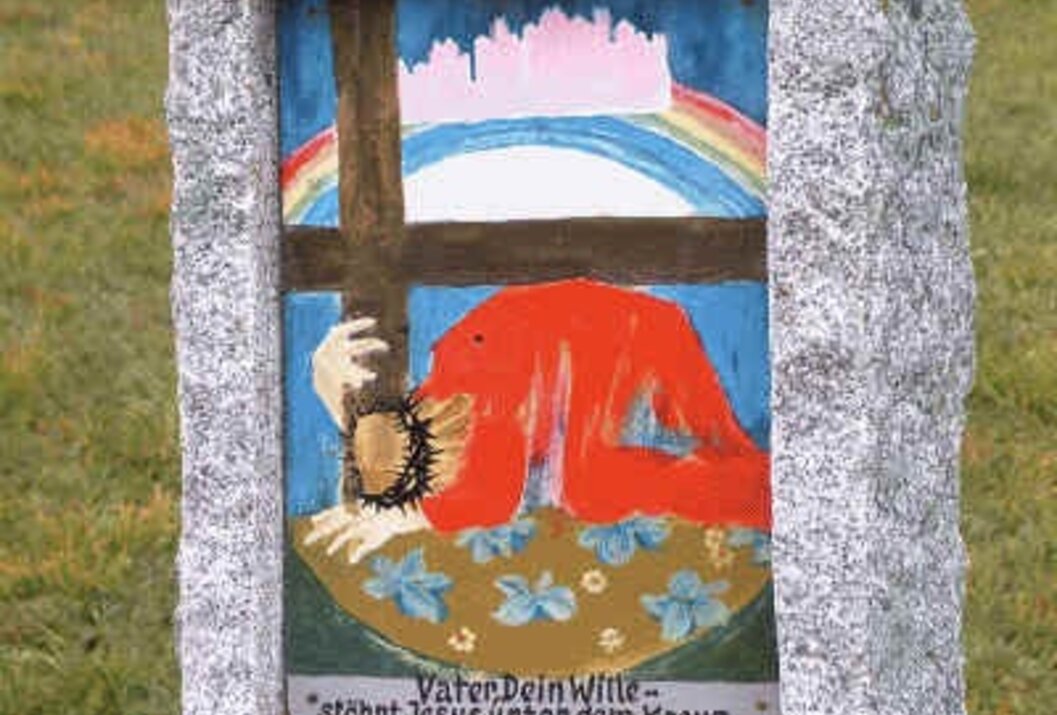 Richtung Westen vorbei am am Hotel Engel und bei der nächsten Wegkreuzung rechts Richtung Norden. Die links liegende Brücke überqueren und weiter Richtung Norden. Bei der ersten Abzweigung links Richtung Westen, danach rechts Richtung Norden leicht ansteigend. Dem Weg folgend Richtung Osten bis zum Einstieg des „Vaterunser-Weges“ der weiter Richtung Westen führt. Bei der Abzweigung links über einen längeren Abstieg bis kurz vor den Ortsteil Innergschwend. Dort links halten