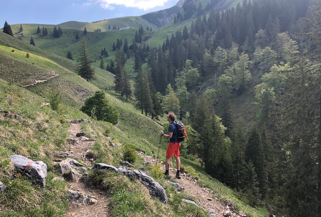 Wir laufen von Hinterstein über die Zipfelsalpe zum Kühgundkopf und zum Iseler. Dabei schaffen wir nicht nur richtig viele Höhenmeter, sondern laufen auch auf den Etappen 1 und 6 des Grenzgänger-Weges.