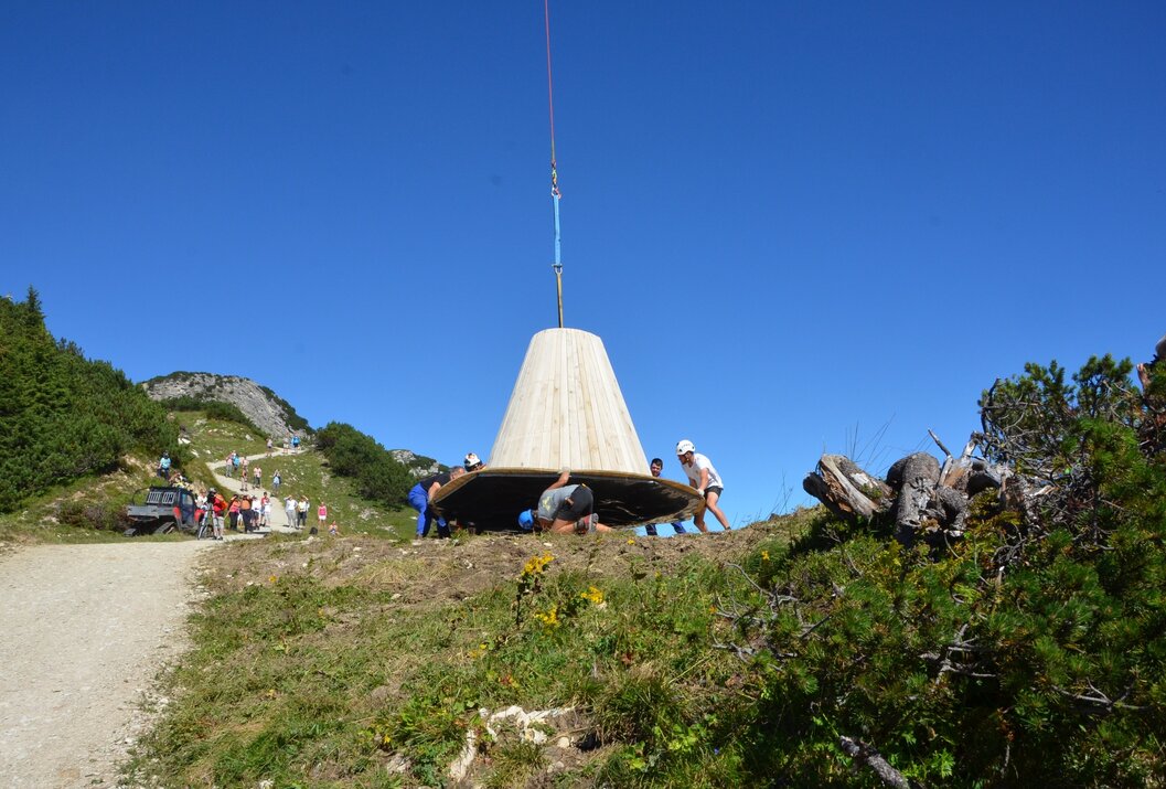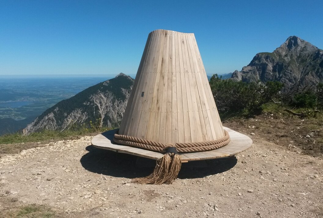 Der „Kuckst Du – Sonnenpanoramahut“ kann von der Bergstation Füssener Jöchle mühelos auf unserem Geo-Pfad in Richtung Gamskopf erreicht werden. Der Hut steht