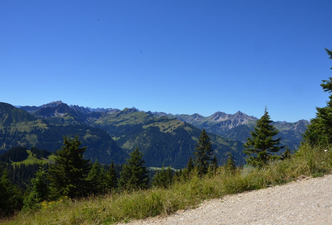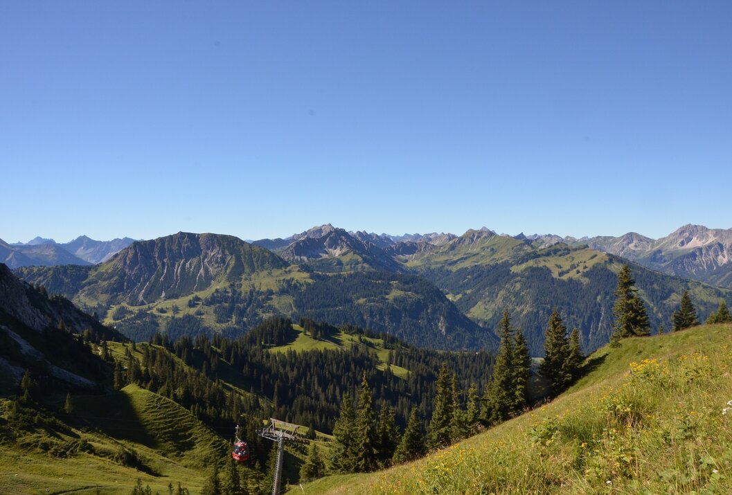 Wir fahren in Grän mit der Gondelbahn nach oben. Von dort aus folgen wir dem Weg Richtung Aggenstein bzw. Gamskopf. Der Weg führt uns hinter der Bergstation