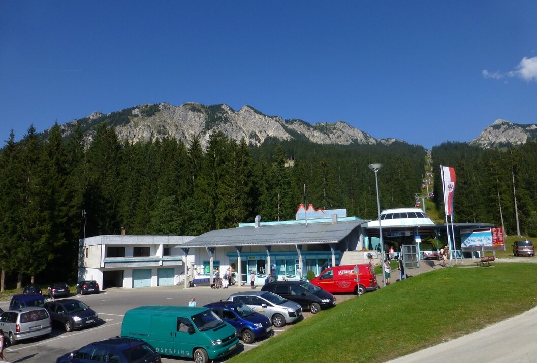 An der Talstation der Bergbahn Füssener Jöchle - Kostenpflichtig.