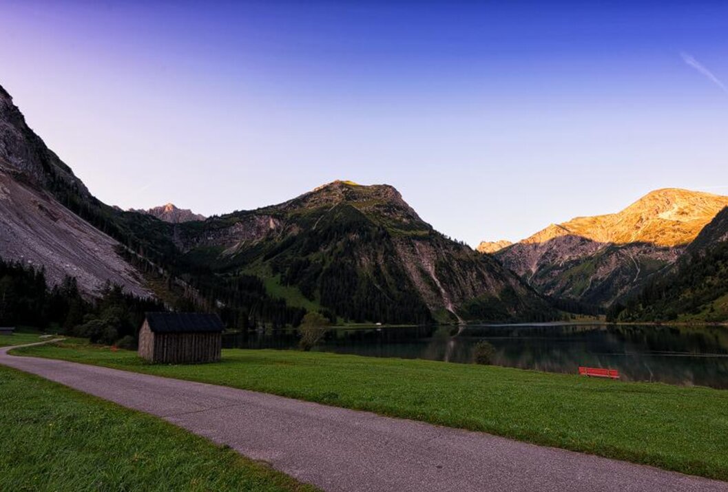 From the parking lot on the west shore along to the Vilsalpe, further to the Bergacht Waterfall and back to the starting point.Tip: