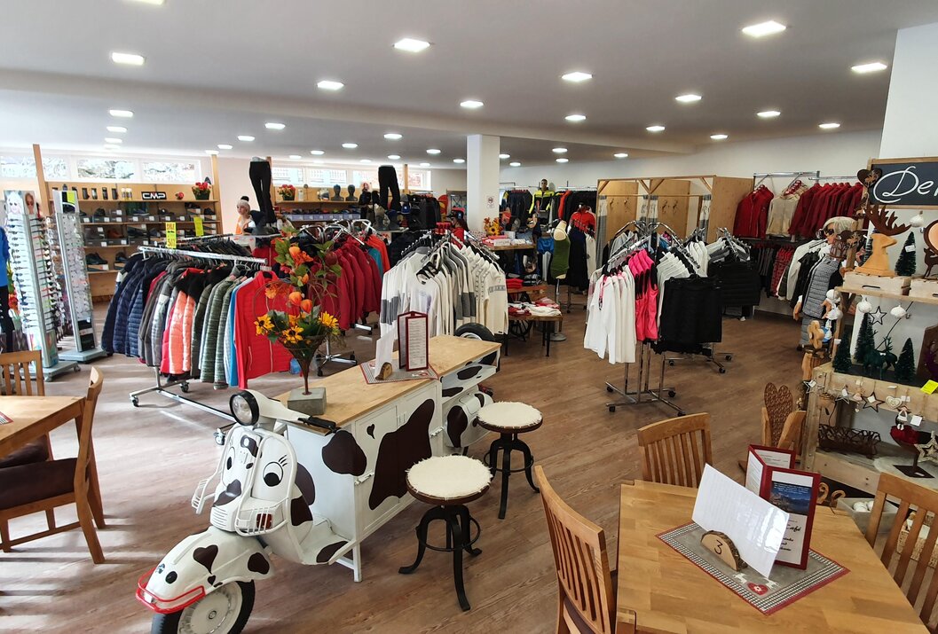 On an area of almost 400 square meters, a diverse selection of sports and leisure fashion for adults and children is offered. To match, you will find shoes, bags and jewelry. The range is rounded off by the "WohnArt" department. Here you will find trendy and unusual items in a warm ambience. Among them are tasteful decorative items that embellish any home, as well as various travel souvenirs and souvenirs.