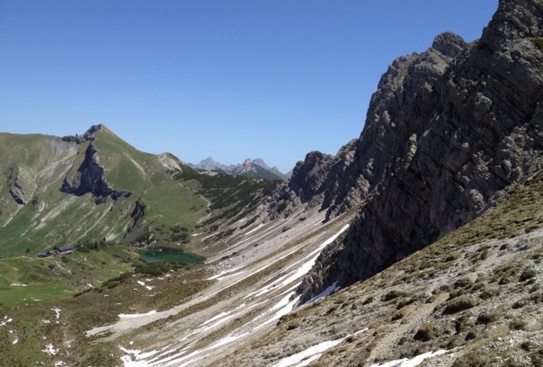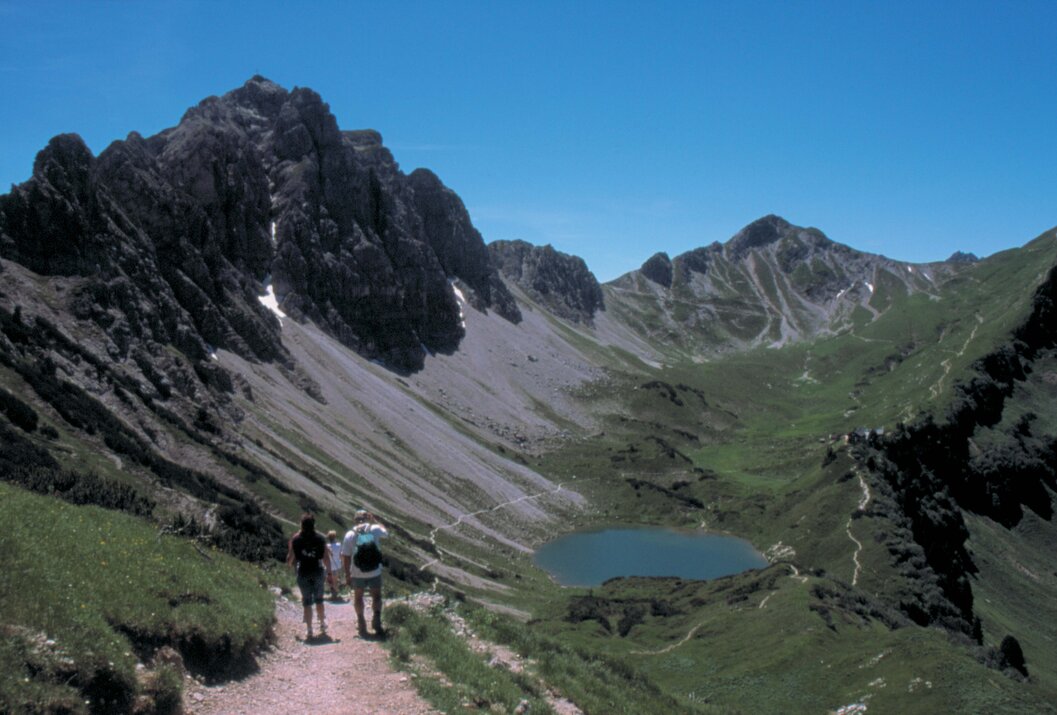 This small lake, which translates to "puddle" in High German, is located in the Allgäu Alps near the Landsberger Hut. It is named after the immediately neighboring mountain, the Lachenspitze, whose massive rock face borders the shore of the lake. A variety of hiking routes lead past the tranquil lake, among the best known of which is the