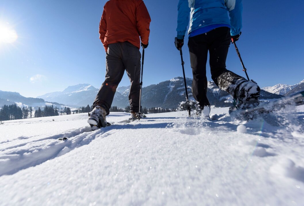 Equipment:Modern and well-maintained equipment (snowshoes, mountain or hiking boots, poles, warm, functional, and waterproof clothing, possibly gaiters) not only provides a considerable level of safety but also makes snowshoe hiking much easier. Sunscreen (high protection factor and possibly sunglasses) as well as enough fluids should not be forgotten.