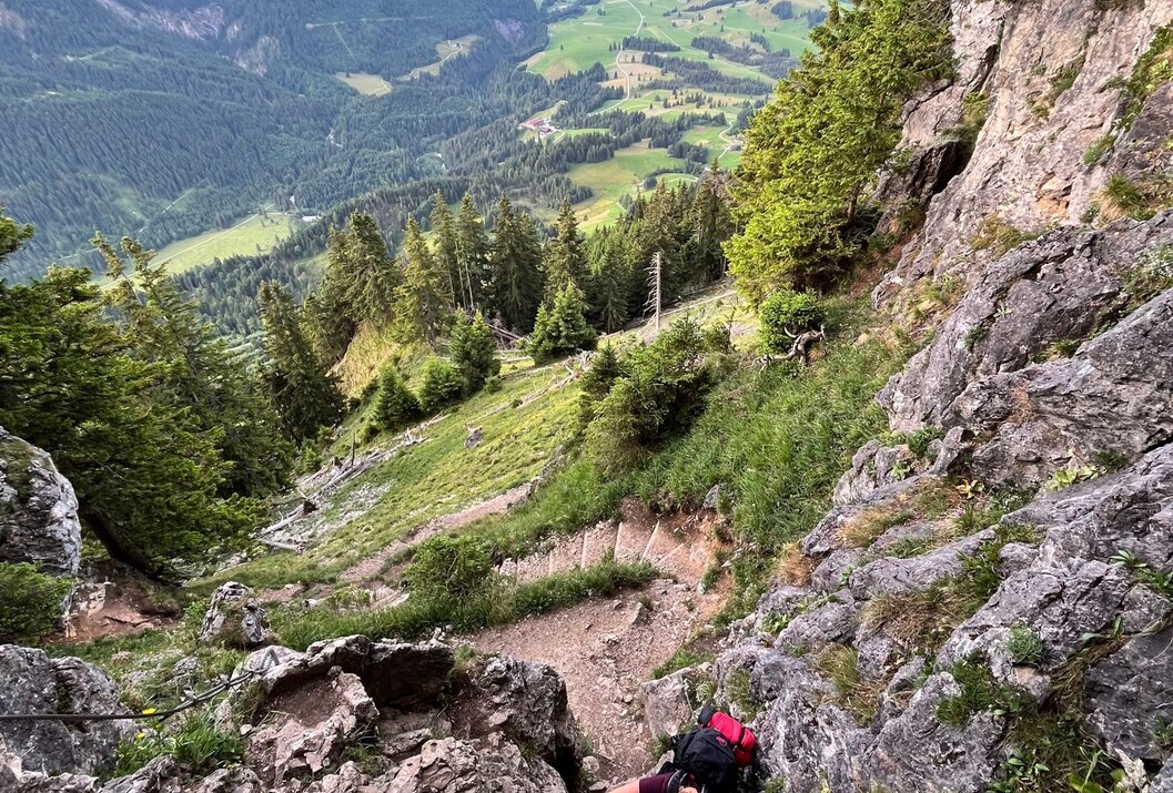 The circular route starts directly in Jungholz and combines everything that makes for an exciting mountain hike: quiet forest paths, scenic ridges, and a touch of via ferrata feeling. The ascent initially leads steeply along a trodden path beside the former ski slope – only above the forest does the route reveal its alpine character. Behind the forest begins the most exciting part of the route: the climb to the Sorgschrofen leads over steep terrain, which is secured with ropes in places and requires sure-footedness. Between the two summits – Sorgschrofen and Zinken – awaits the most challenging section: a narrow ridge with airy passages where you have to support yourself with your hands or scramble repeatedly. The view into the depths accompanies you up to the second summit, the Zinken, from which you enjoy an impressive panorama. The descent takes place on significantly easier paths. Gently sloping paths and forest roads lead over the north side of the two summits back to Unterjoch and finally to the starting point in Jungholz. A route that requires fitness, sure-footedness, and a head for heights – and is rewarded with genuine mountain moments.
