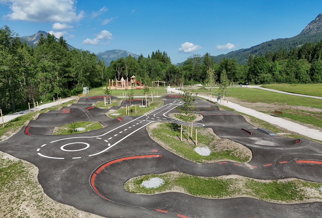 The Ninja course in the Funpark Grän, located directly on the cycle path, is a varied outdoor obstacle course for young and old. Inspired by the “Ninja Warrior” principle, it specifically promotes strength, coordination and endurance. The offer is complemented by a modern pump track.