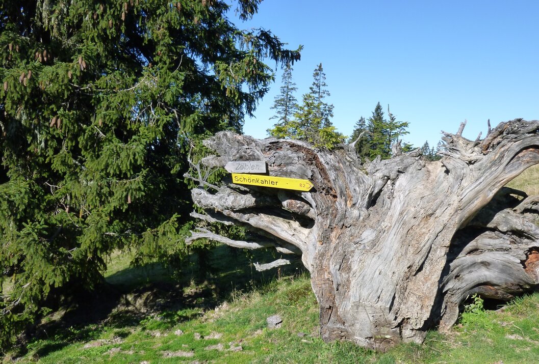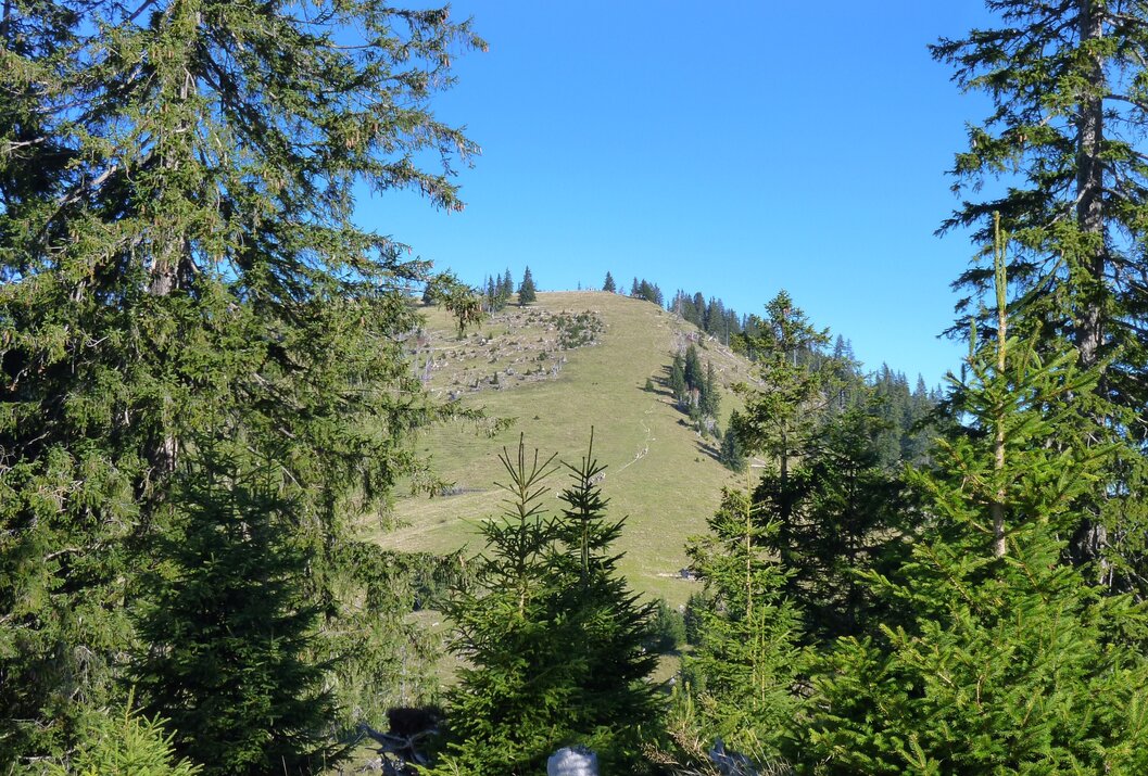 Follow the signs to Zugspitzblick from the parking lot. The paved path steadily ascends through Zöblen to Obere Halde. Here is the guesthouse Zugspitzblick. With good visibility, there is a view of the Zugspitze. From here, the path continues on a gravel road. A good forest road, not too steep, takes us further up. Suddenly it levels out and we turn right. Ahead of us stands the mighty Einstein. Immediately after, the signpost points left. Over grass-covered hills, we enter the forest. First slightly uphill, then gently downhill, over two wooden bridges and uphill again, we reach the so-called Alten Hof with the Salzstadel, an old wooden hut. Now it goes uphill again, to Rehbichl and Pirschling. From the plain in front of us, you can see the Pfrontner Alm on the lower right. Up here there are usually some horses grazing in summer. Soon the summit is reached after a moderate climb. Since the Schönkahler is not very high, the view from here is surprising. The return follows the same path. After a short stop at the Zugspitzblick, the last stretch down to Zöblen is soon done.