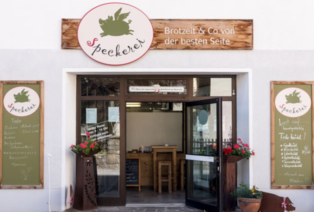 ... also our own Tannheimer wool pigs are offered here in the form of bacon and g`schmackigem Schmalzerl in our Speckerei. for our guests there is also a small "treat" waiting ....