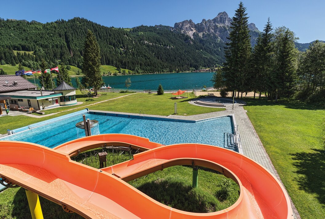 The municipality and the tourist association Grän-Haldensee has built an attractive outdoor swimming facility for you - and in a particularly beautiful place - directly at the Haldensee. Consisting of toddlers' pool, non-swimmers' area with massage bubble and waterfall, sports pool and as a special attraction a 50 meter long water slide. The water surface of more than 500m² is heated to a comfortable bathing temperature in an environmentally friendly way with a solar system. Have you ever bathed in drinking water - the Haldensee is checked several times a season and has a water quality that is hard to beat. Children: swimming, playing, boating on the lake or "action" on the water slide. Directly on the bike and hiking trail!