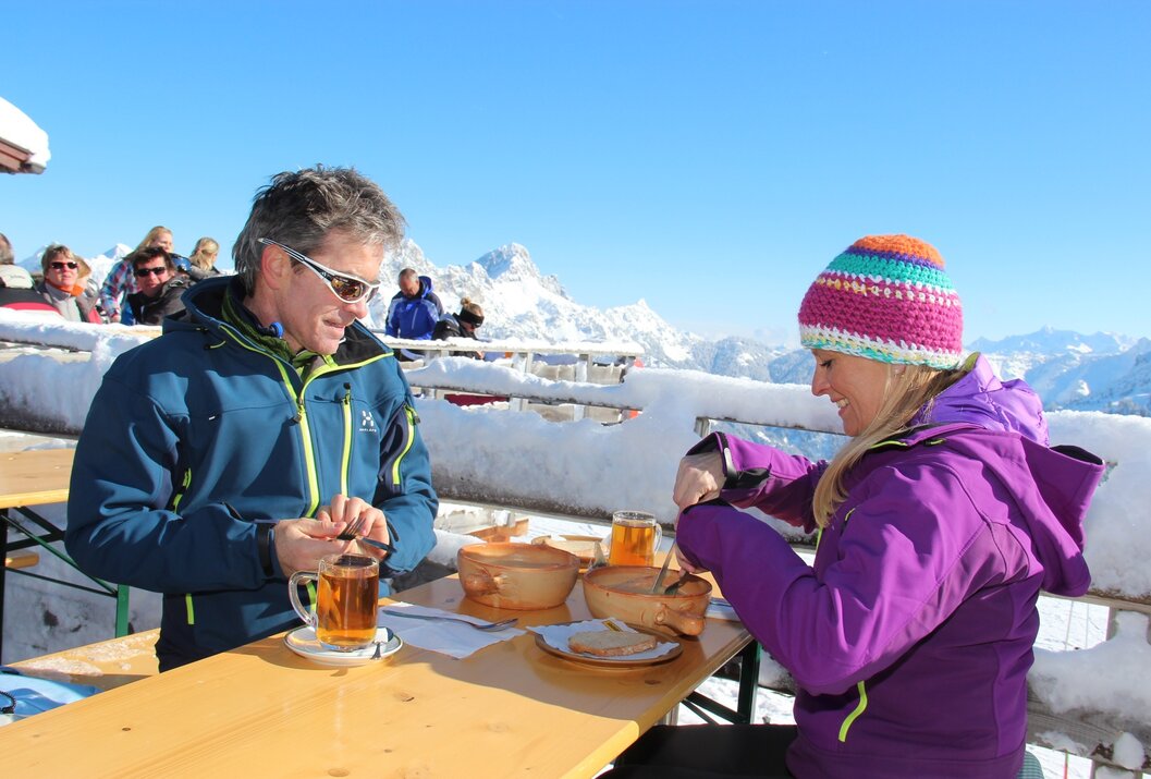 The hike on and around Neunerköpfle in Tannheim is suitable for families and starts at the mountain station of the gondola. The winter hiking trail is cleared daily and leads to the summit of Neunerköpfle. There is also the largest summit register in the Alps (2 pages each 3 x 2.3 m) where you can also sign your name. The wonderful view over the entire Tannheimer Tal is maintained even on the approx. 2.2 km long new hiking trail at just under 1900 meters above sea level.