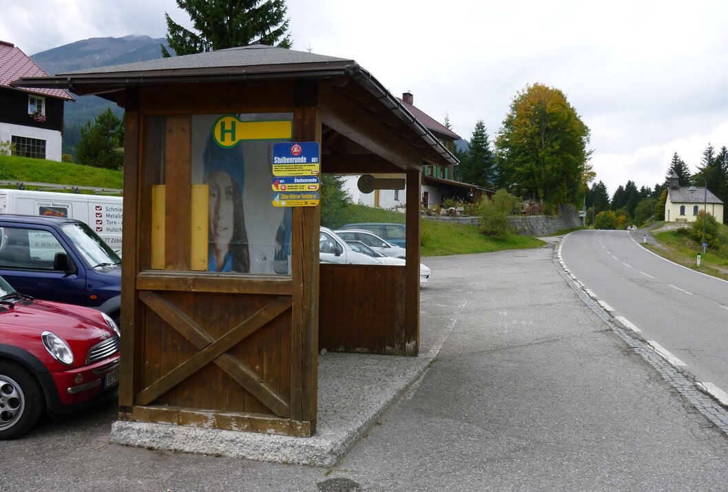 Parking lot at the small chapel in Katzensteig, at the village edge of Zöblen - paid parking.
